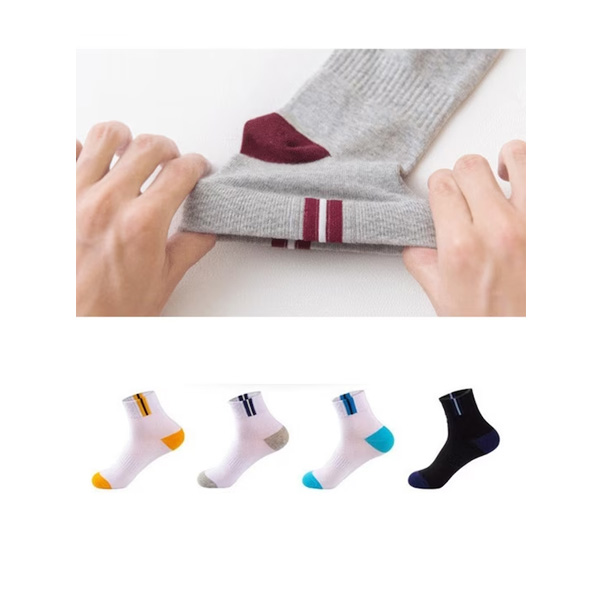 Pack of 5 ankle length low cut cotton socks, each has a ribbed mouth and a flat toe seam